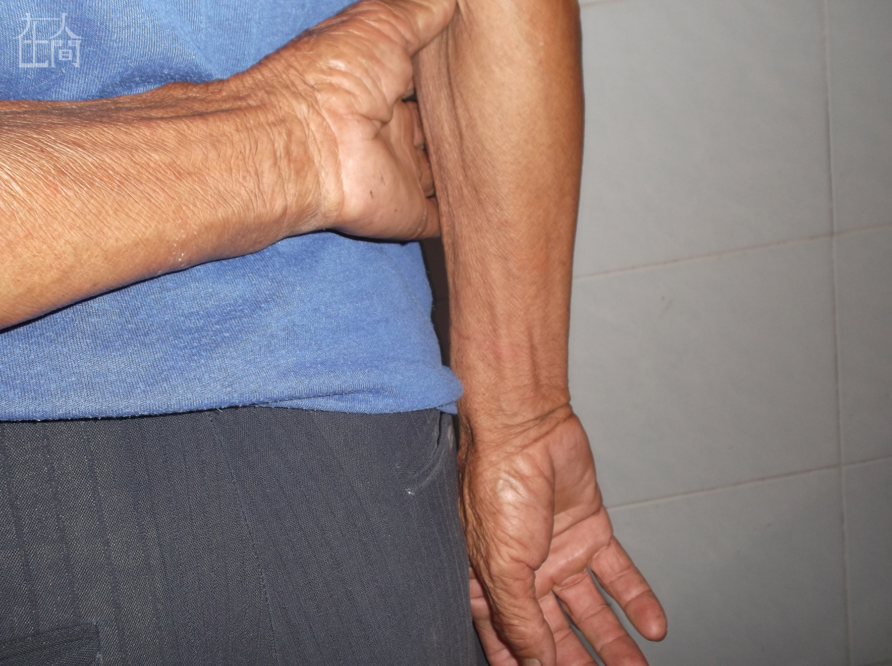 这是爷爷的手,给爷爷看照片的时候他说不错,就是看起来太老了,皱巴巴的。我拿给奶奶看的时候她就说太瘦了。我爷爷的手这么瘦,是因为他经常干活,又种田又做水泥工,很辛苦。