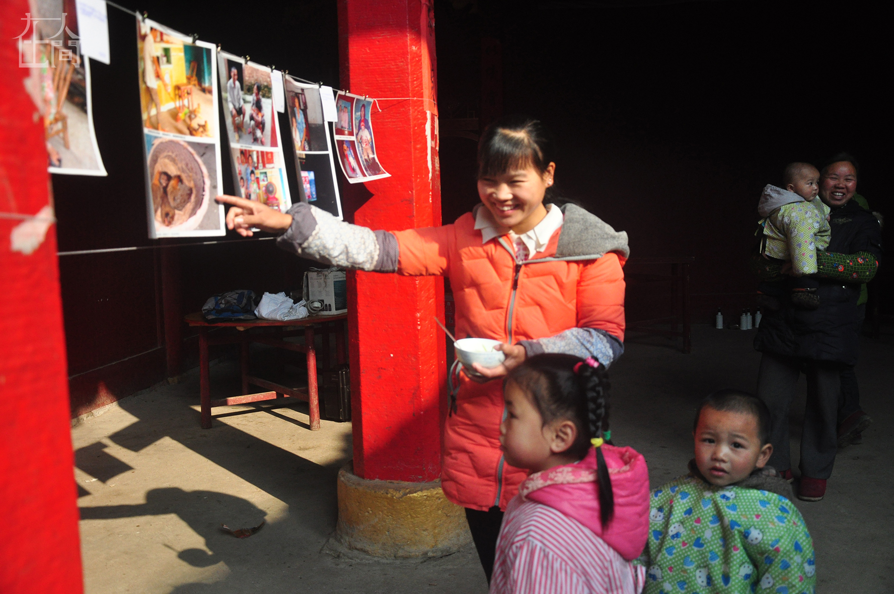 摄影班结课的时候,孩子们一起在村里办了一个自己的摄影展。展览很简单,把挑选好的照片冲洗出来,用夹子挂在绳子上,孩子们和在村里的人都会来看。