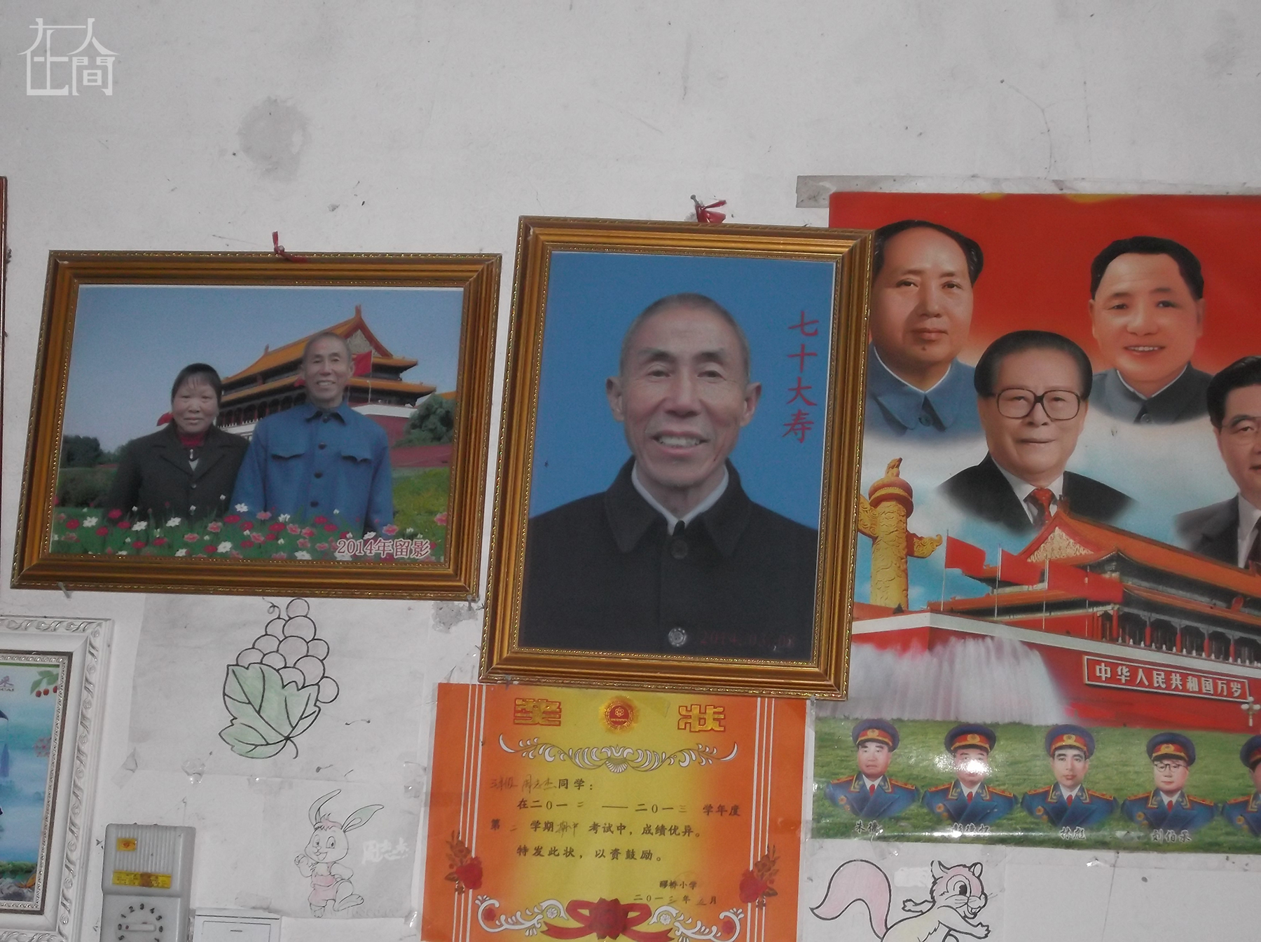 这是爷爷七十岁的时候拍的,当时村里来了个照相的,爸爸就叫爷爷奶奶去照相,照了两张,一张50块钱,一共是100块钱。我看到照片挂在墙上很好看,就拍了一张,我觉得这张照片拍得不错。