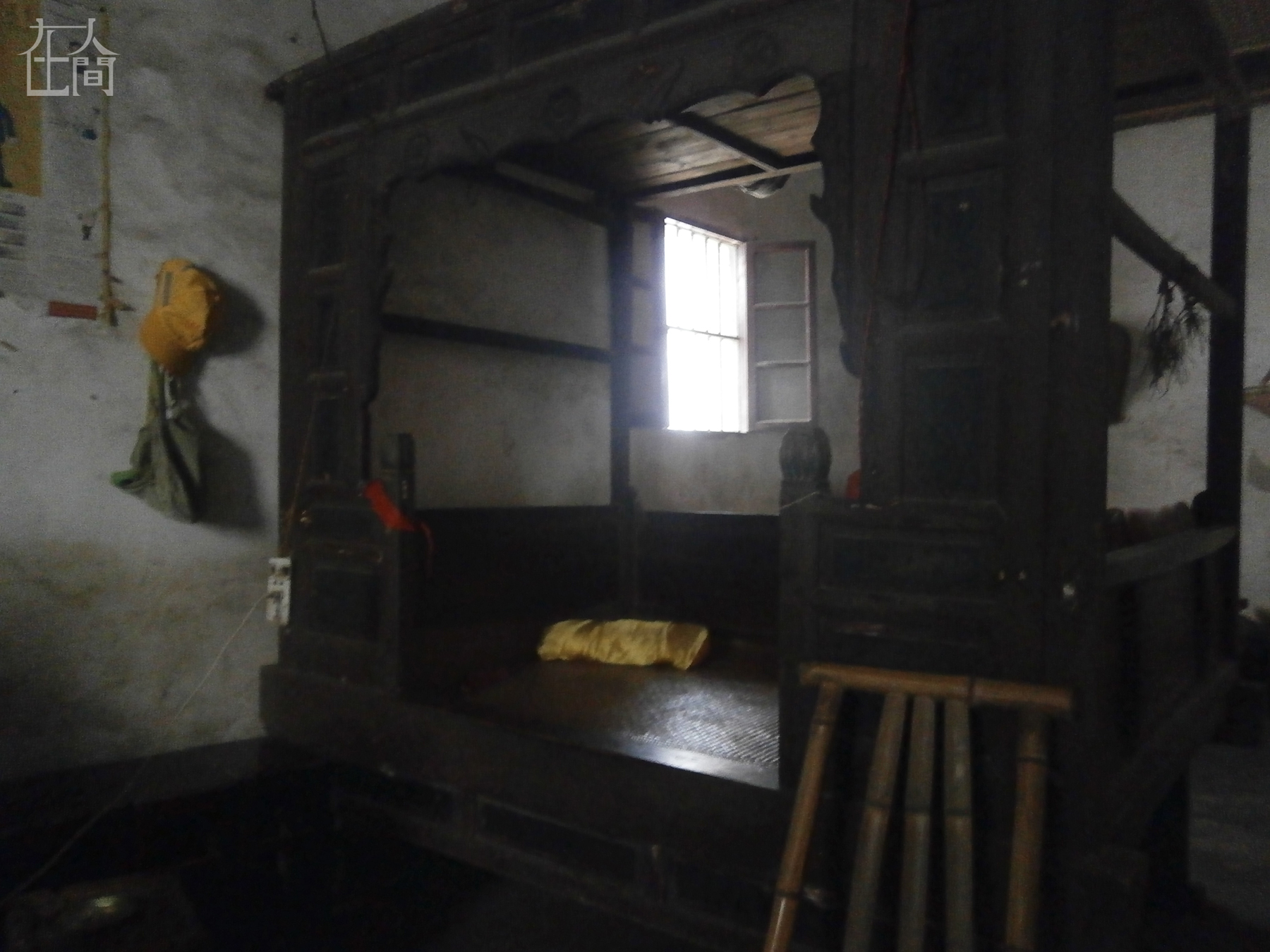 这是太公太婆的床,晚上他们就睡这张床,这个床很老了,太公太婆都睡了几十年了,他们的儿子女儿是在这张床上出生的。太公太婆的儿子盖了新房子,但他们说住不惯新房,睡不惯新床,还是要住老房子,睡老床。