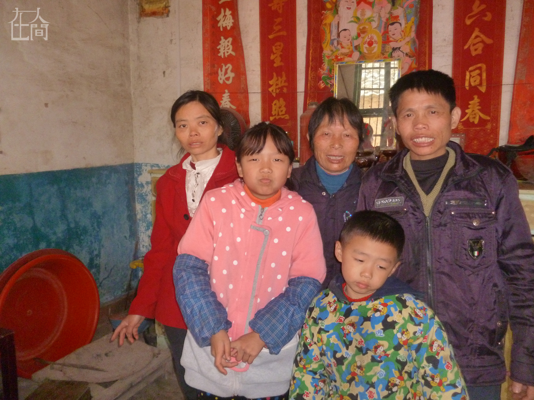 这是我表姐帮我们拍的全家福。姐姐让我好好照,我就把嘴巴鼓得大大的。我爸爸妈妈平时没事不回来,这次回来是要给我外婆办后事,回来了十天就回东莞了。