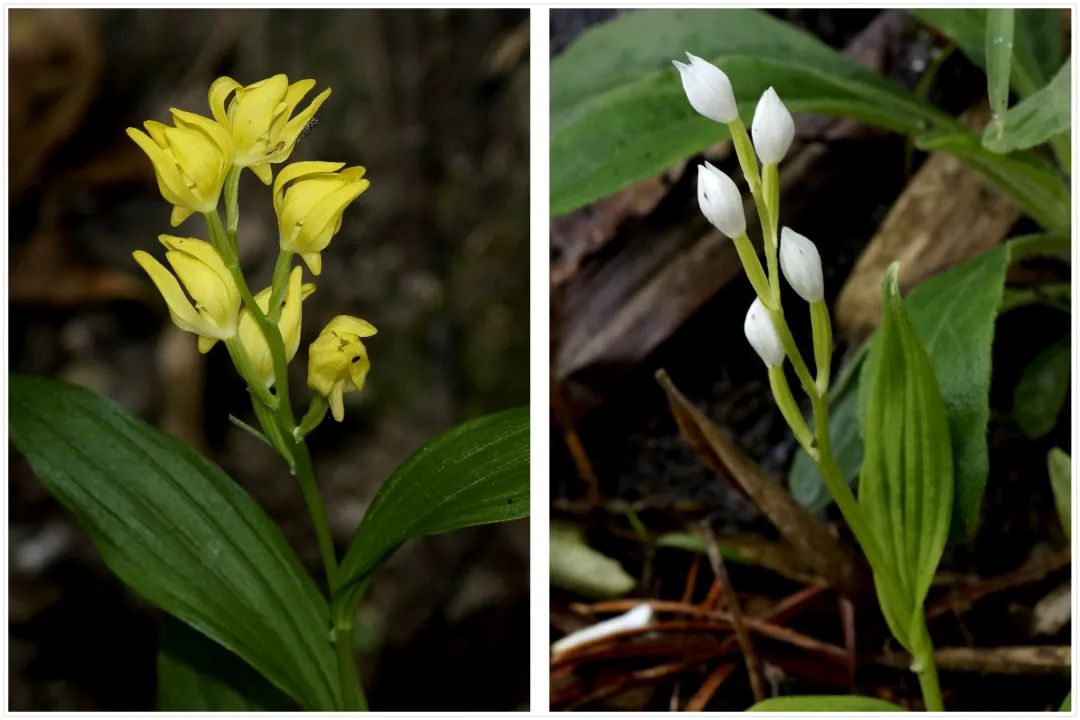 金兰(Cephalanthera falcata)和 银兰(Cephalanthera erecta)。图片:含笑