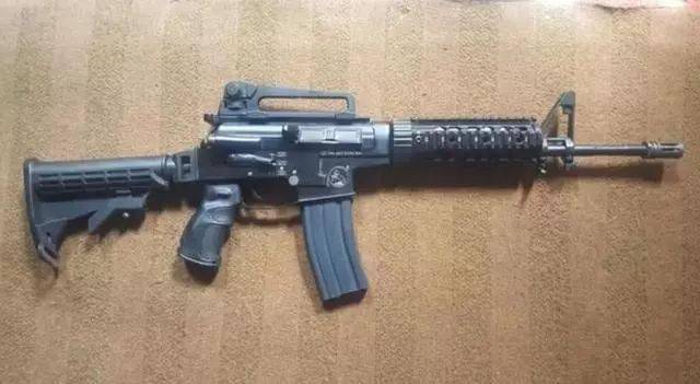 这好像是一支中东枪械黑市上出现的M4步枪,不过明眼人应该已经看出来的,虽然提把、护木、瞄具、枪托、弹匣都具有M4风格,但它的枪机和ARAK-21一样,都是AK-47样式。拨片式快慢机,还有这布局混乱的铆钉,机匣上可以看做许多AK-47的特色。虽然号称是M4步枪,但实际上它是M4与AK-47的结合体,而且制造者显然下了不少功夫,外形做得相当不错。土制“M4”步枪采用5.56毫米口径,而非AK-74步枪的5.45毫米口径。