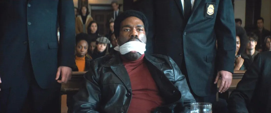 《芝加哥七君子审判》这部电影最大的亮点便是庭审戏始终都冲突强烈,看到法庭之上,博比的嘴巴被堵住之后,七君子在法官退庭的时候,统一不起立。