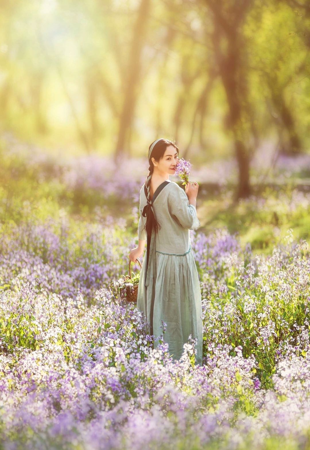 女人到了中年后,气韵上很有韵味,因此不用过度的摆拍也是可以拍出自然好看的效果的,像在类似于花海等地方旅行拍照时,您可以简单地站在花海中,手拿束花再自然地回过头来看向镜头,简简单单的姿势也能拍出你的气质美。