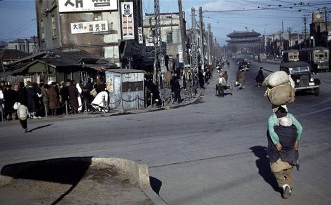 这是50年代的韩国首尔,那时这里破败不堪,街头随处可见汉字招牌