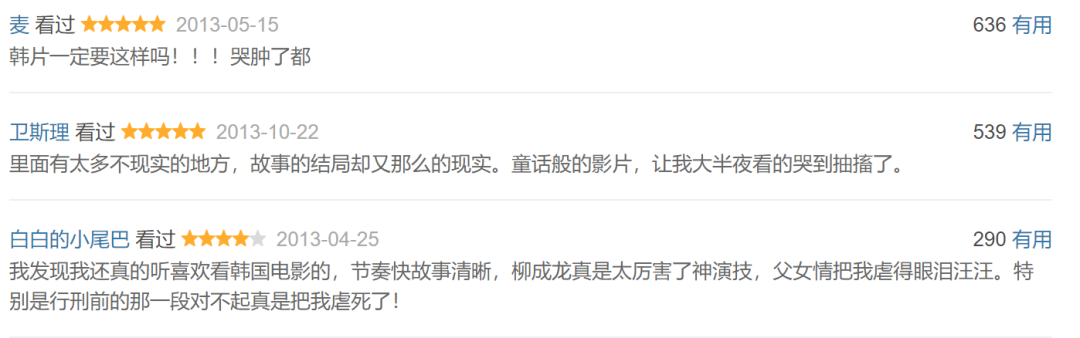 影片短评区几乎要被大家的泪水冲垮,满屏都是“哭肿了”、“哭到抽搐”、“眼泪汪汪”……