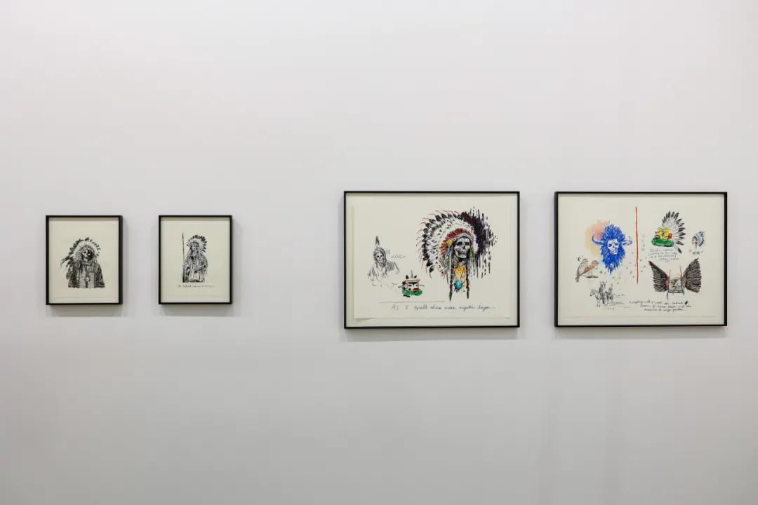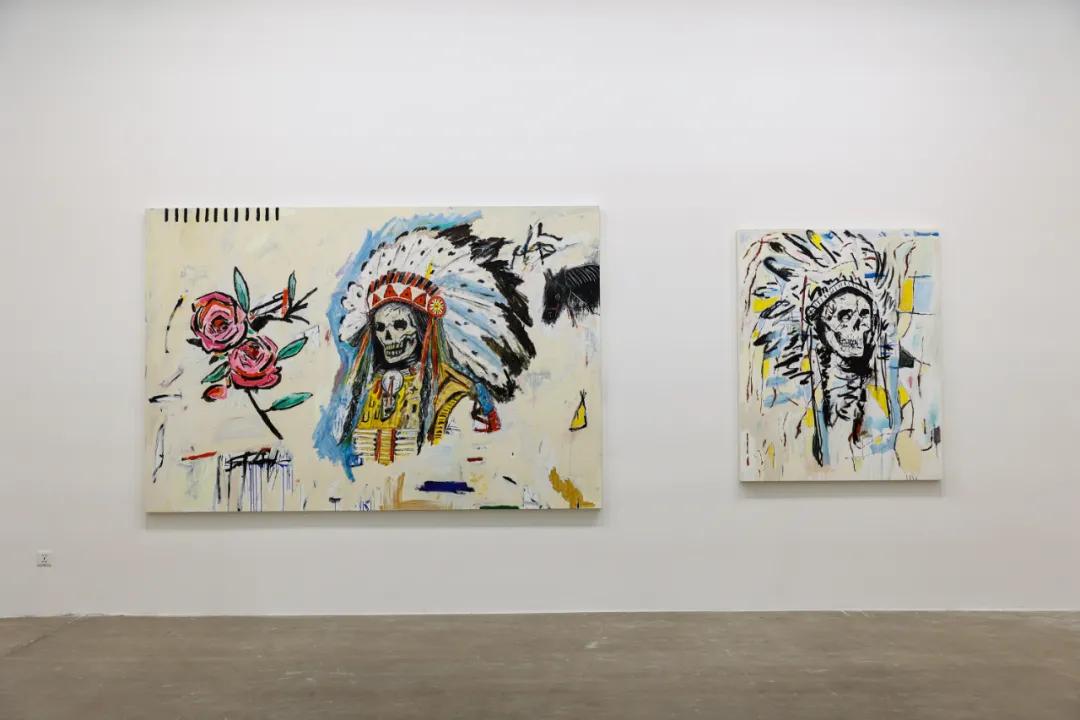 阿尔敏·莱希(Almine Rech)带来了美国艺术家韦斯·朗(Wes Lang)的个展,在展区中拉开了一幅颇为壮观的极具美国西部特色和民族身份的图像拼贴集锦。韦斯·朗工作生活于加州,作品中的元素大多来源于美国机车文化,并借鉴融入了摇滚标志、纹身美学、加州公路生活以及美国历史。他的创作媒介主要是画布和纸张,也十分擅长将自己的设计语言与产品相结合。自与“坎爷”肯伊·韦斯特(Kanye West) 的合作以来,朗也与其他领域品牌,包括元祖街头品牌FUCT SSDD、Vans、劳力士和瑞典品牌Indigofera联名推出过限量设计。潮流圈对朗的青睐,与其极具个人辨识度的涂鸦和鲜明的流行艺术风格密不可分。