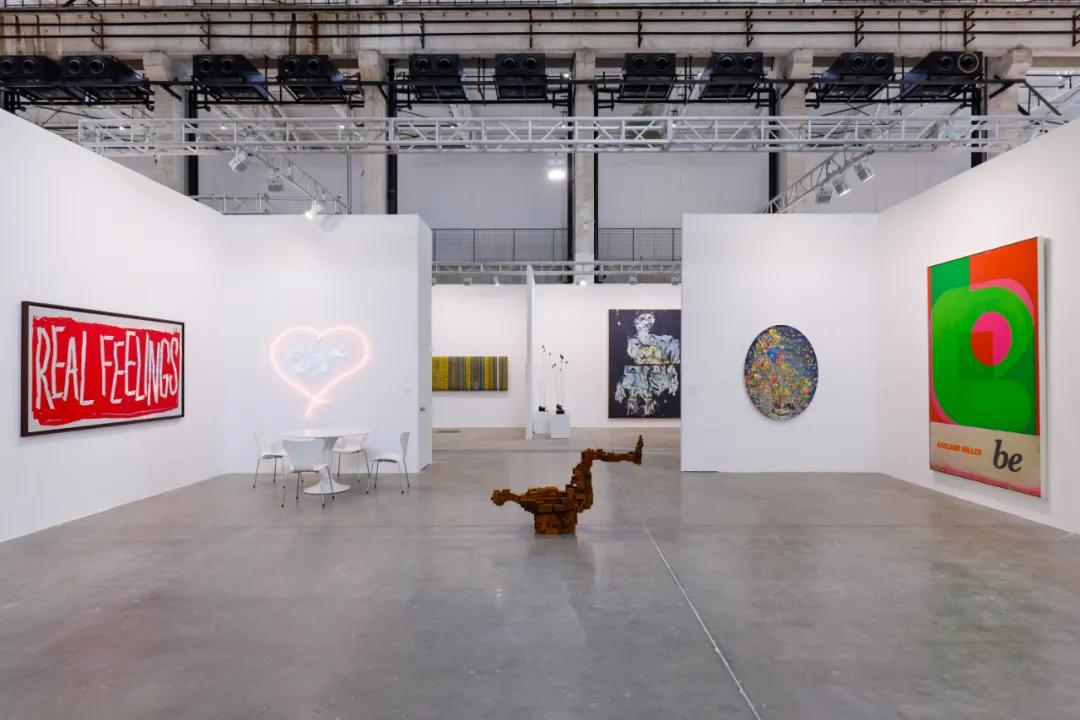 翠西·艾敏(Tracey Emin)的标志性霓虹灯创作让人一眼便能注意到白立方画廊的展位,画廊带来的作品涵盖不同的价格区间,最贵的不乏乔治·巴塞利兹(Georg Baselitz)百万欧元级别的绘画,其他来自王功新、埃迪·皮克(Eddie Peake)等艺术家的作品也从数百到数十万欧元不等。截止展会第一日结束,画廊已产生多件销售。