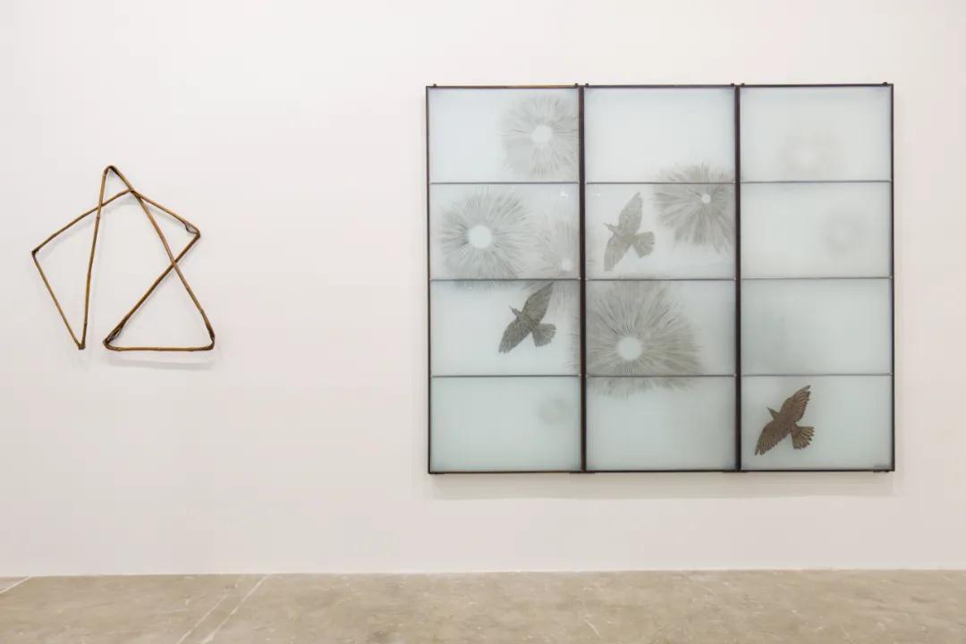 佩斯画廊呈现了16位国内外艺术家的作品,大胆介入并展陈女性主义、种族主义等时下讨论度颇高的议题。三位不同年代黑人艺术家的作品勾勒出种族主义在艺术创作中视角的变化:生于1933年的山姆·吉利安(Sam Gilliam)对纸与水彩的搭配透露出黑人文化特有的音乐性;生于1973年的托克瓦斯·戴森(Torkwase Dyson)探索全球工业化主题,发展出了名为“黑色空间解放”的概念和方法;生于1984年的亚当·彭德尔顿(Adam Pendleton)则更直观地回应各类社会问题,带领人们进行更多的批判性思考。尹秀珍是中国当代艺术领域中最具知名度的女性艺术家之一,本次呈现的《假门》系列为艺术家2019年的创作,门框由旧衣服包裹而成,门内置一破碎的镜面,镜子裂缝用衣服碎片填补;对于美国女性艺术家奇奇·史密斯(Kiki Smith)以及洛伊·霍洛韦尔(Loie Hollowell)而言,“女性触觉”更体现在创作题材上——前者创作中常出现的多种意象都具有持续的生命力,而后者则偏好对女人体的某些“碎片视角”进行抽象化处理。