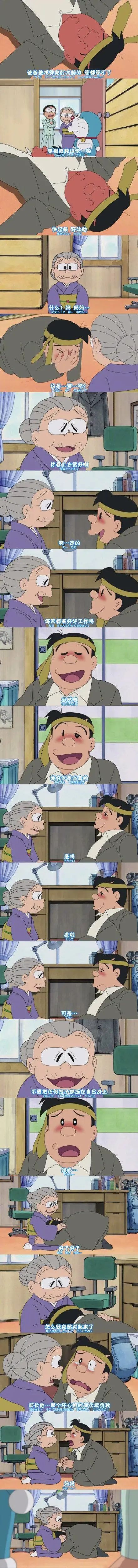 平时在大雄面前很像个爸爸的爸爸,在自己的妈妈面前,突然爆哭起来。