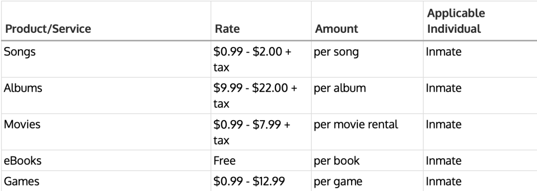 即便在监狱劳动报酬最高的加州(90美分/小时),犯人至少要花上半年时间的满负荷工作才能得到一台设备,接下来还要用永无止境的“福报”来换取所需要的影音和通信服务。还有的监狱干脆把耳机、电源线等等附件都明码标价,甚至就连充电也要额外付费。