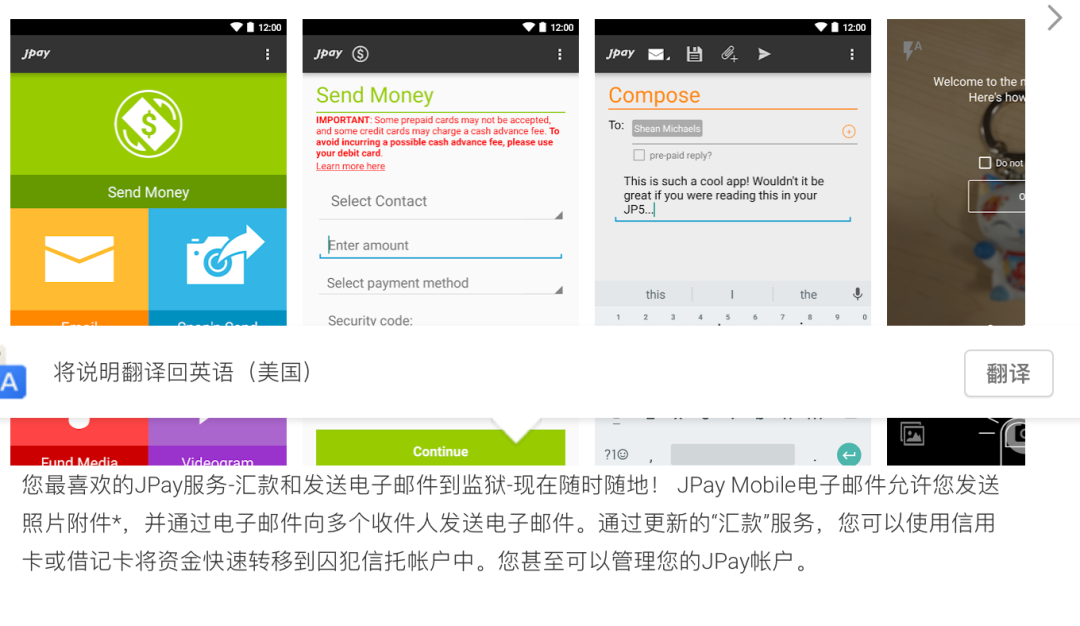 安卓版Jpay官方应用,主要的功能是供罪犯家属汇款