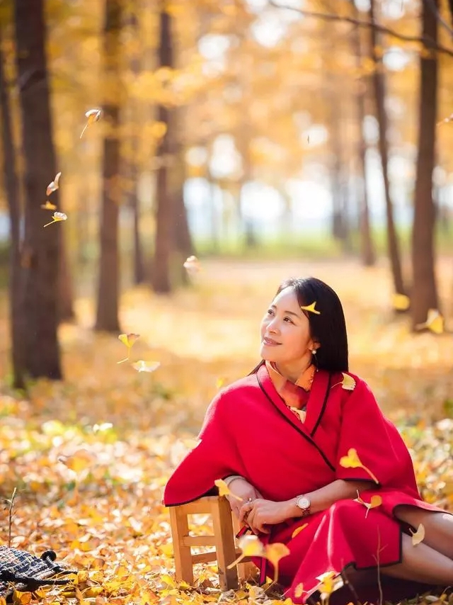 想要把照片拍得更加的自然好看,支撑的技巧要学起来,拍摄时倚靠或支撑着场景中的物体,一来能帮助您更好地放松下来,二来转移你的注意力,像以下的图片所示,人物坐在银杏树下,双手支撑物体,眼神看向远处,很自然很有气质美。