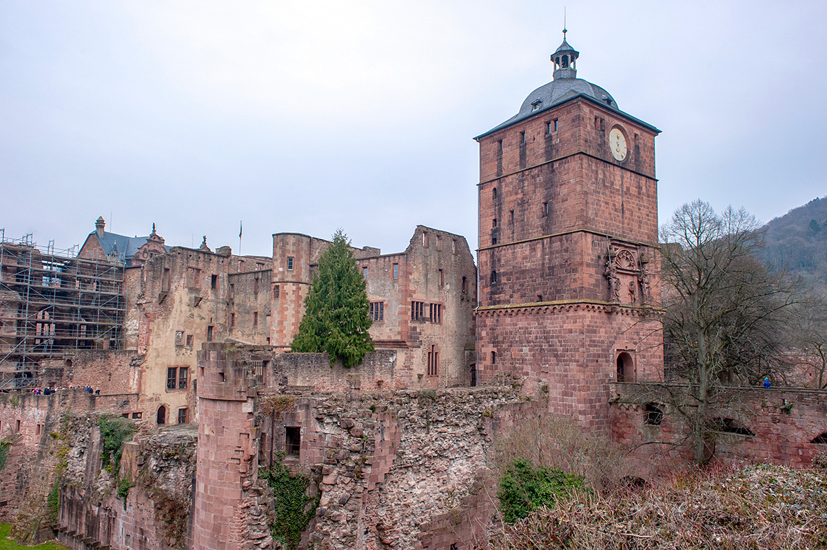 海德堡是德国著名的文化之都,歌德在这里留下了一句“我把心遗落在了海德堡”,使这座城市备受后人喜爱。原本对于这处目的地是充满期待的,可惜我们停留的时候天气并不好,阴冷萧瑟的冬季,无论是视觉观感还是照片效果,都不尽如人意。不过,依然对坐落于城市后山坡上的古堡残垣印象深刻,虽然海德堡城堡不完整、不精致,却以缺憾之美打动人心,仍不失王者之风,亦成了海德堡的标志之一。