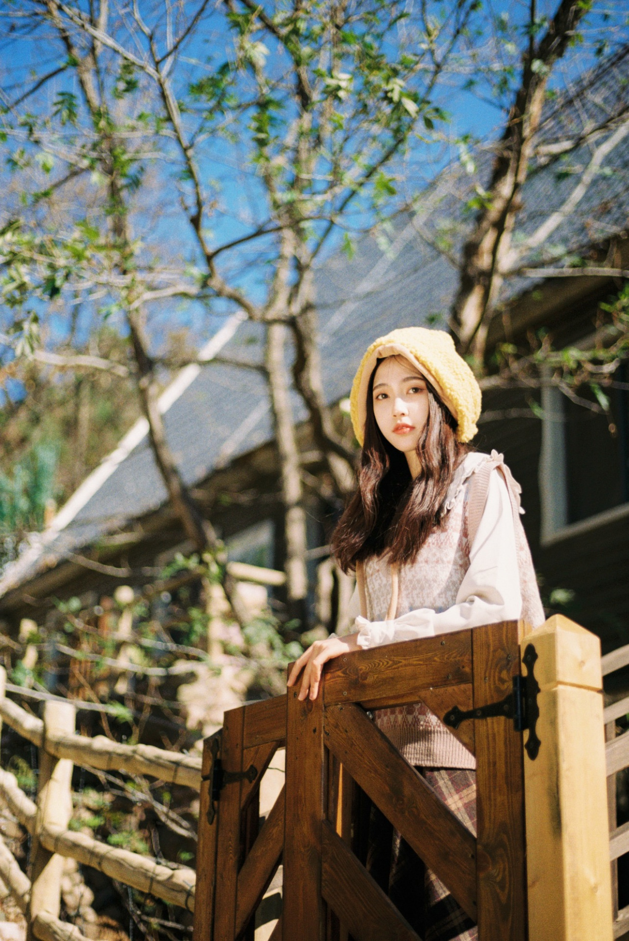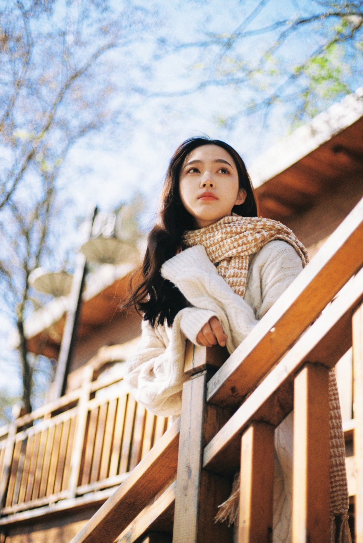 简洁画面的好方法除了背景虚化和近距离拍摄,低机位的仰拍也不错,当地面的景色比较杂乱时,可以适当地放低机位,仰拍人物,这样便能很好地化繁为简,从而突出美美的自己,记得收下巴才能避免拍出双下巴。