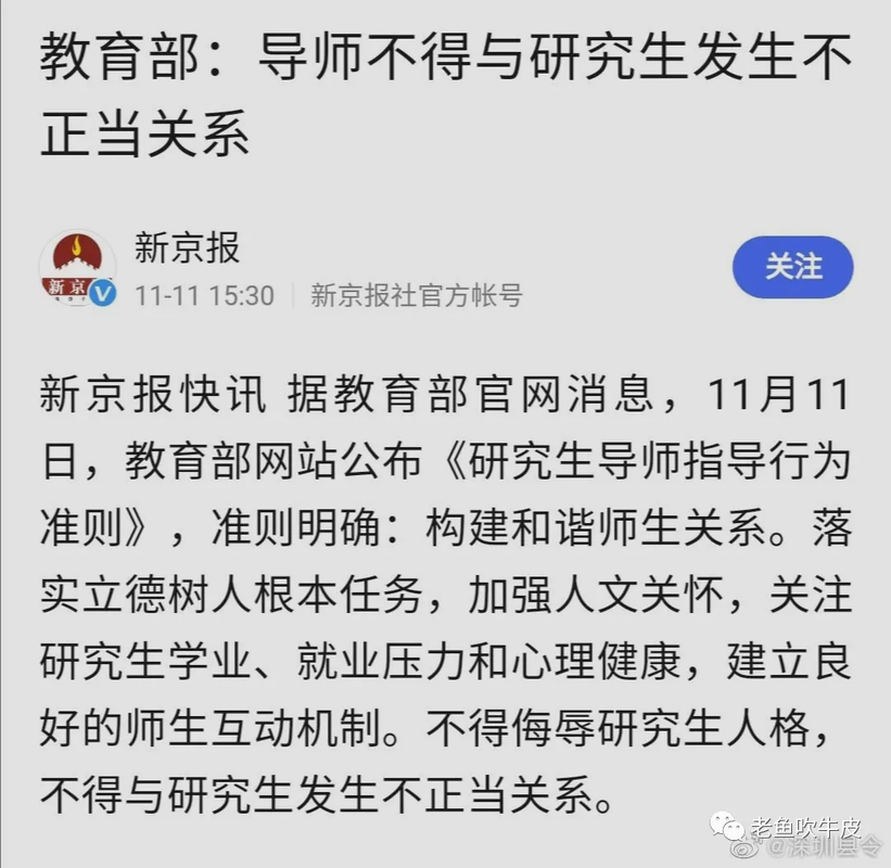 无论什么人,看完了这个规定的内容,是不是就会感觉:这咋说的好像以前是允许导师与学生发生不正当关系似的呢?