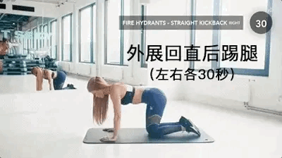 采用四足位,双手放在你的肩部正下方支撑身体,手肘微屈伸直不锁死,屈膝跪地,保持活动腿的屈膝状态,依靠臀肌的发力带动我们的腿向侧方抬起,还原后向后上方伸直并抬起。