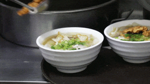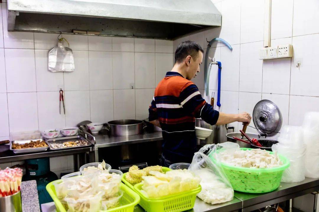 他家也一样,每一份都是先煮完主食后,再将高汤与配料加入进去,所以整个操作起来很快。