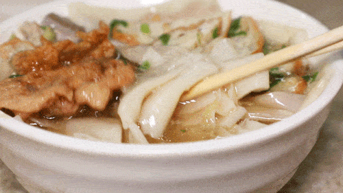 粿汁吃起来有淡淡的米香味,口感柔韧适度,还有点厚实呢。