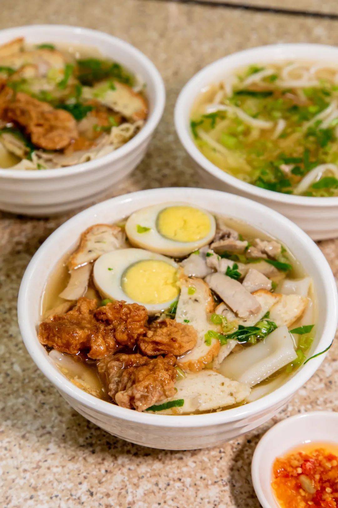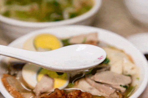 每一碗里面有酥肉、肉饼、鱿鱼丝、猪肠、瘦肉等,分量足料多,一碗下肚绝对顶饱。