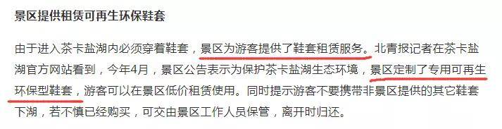 就像当初为了保护茶卡盐湖生态环境,景区定制了专用可再生环保型鞋套,游客可以在景区低价租赁使用。