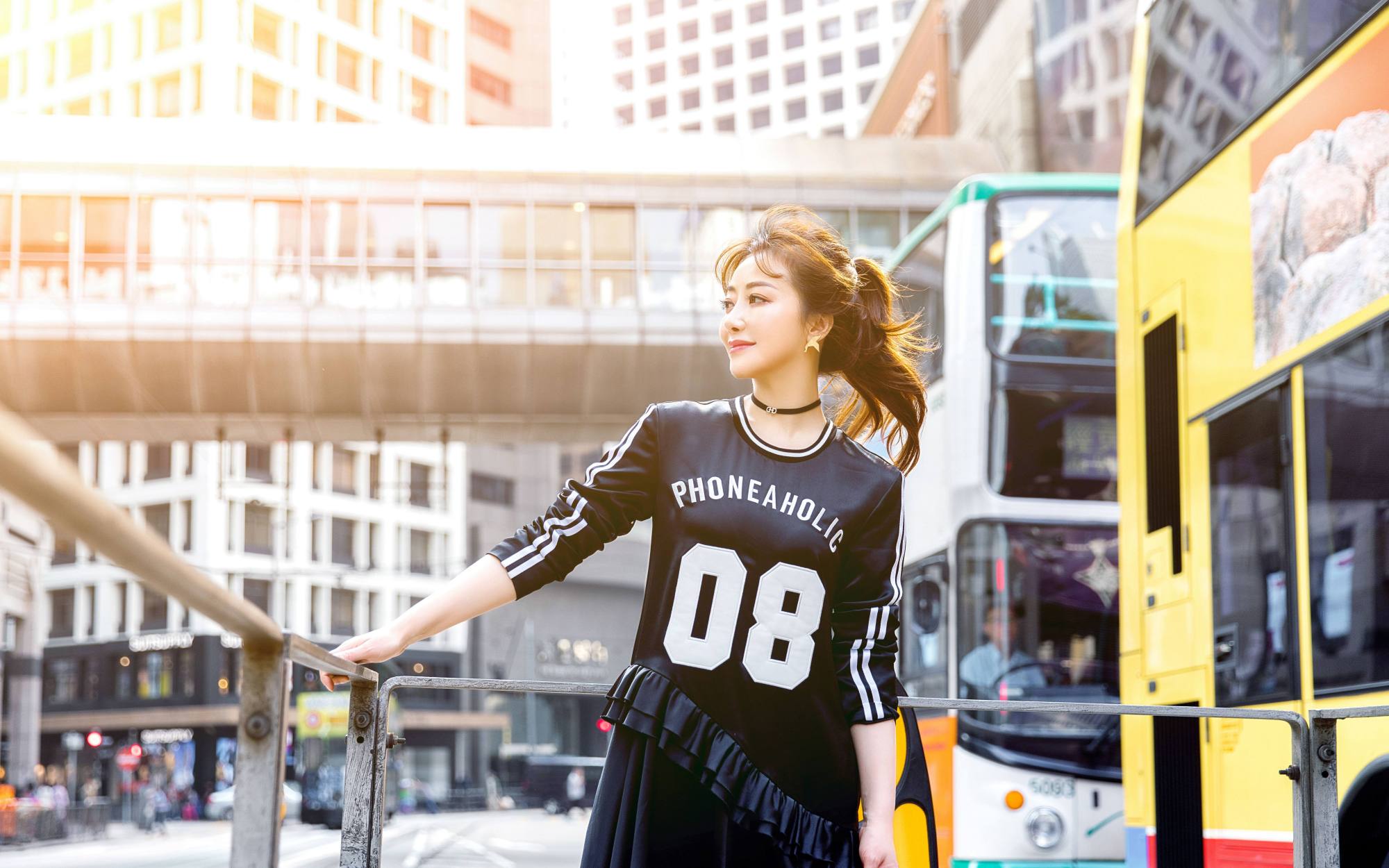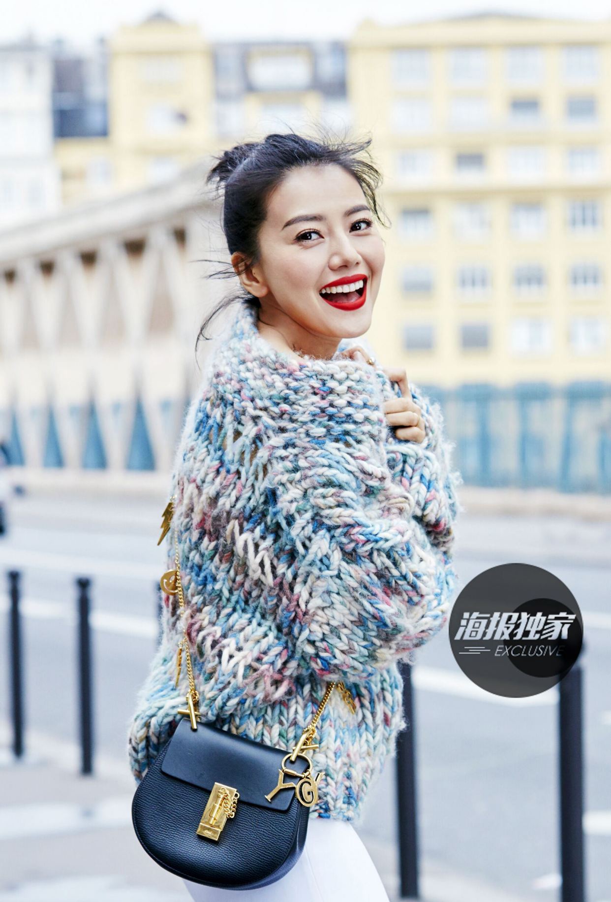 中年女士拍照,可以找一些东西或者建筑让自己身体靠着、或者手靠着,然后同样挺胸收腹,让身体摆出S型,这个姿势能让你看起来气质满满,十分自然好看。