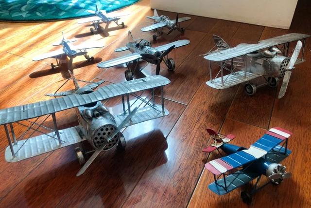 连地板都没放过:他把旧货市场上淘回来的陶俑、瓷罐、小木篓,甚至小飞机,放在大幅画的前方,营造出许多中与西、古与今的对比。