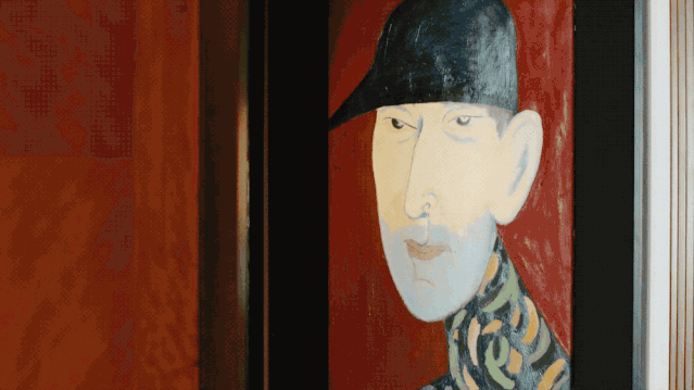 第一张是澳洲艺术家给关东元画的大画像,也是收藏中少见的定制作品。关东元喜欢画面上的明亮色彩和拼贴了一大块有孔洞的板材,不过说到像不像自己,他也无所谓:“西方人看咱们的视角不一样。”