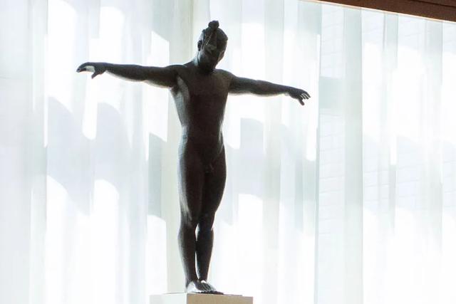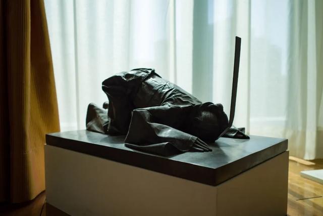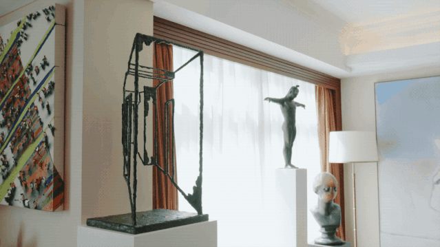 落地窗前没法挂画,关东元把这里布置成雕塑的展区: