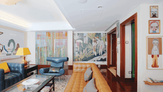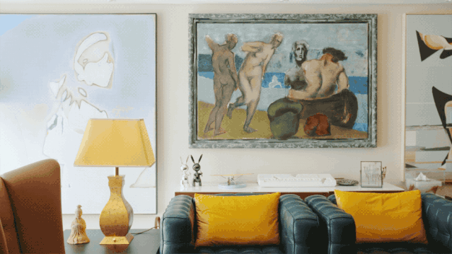 关东元还特意调整了家具,让它们与墙上的艺术品色彩相融: