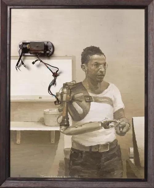 80后闫珩的画里,有点说不清是人在控制机器,还是被机器控制,“类似马斯克要把芯片植入大脑的那个感觉”,关东元说。