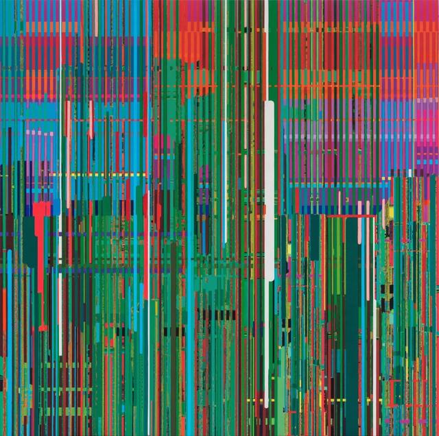 关东元早早拿尺子把公寓电梯轿厢、进家门的转弯宽度都给量了一遍,自信画能够顺利进家门。结果上墙那天,画还是太长,卡在了门厅。不得不再送回去,订制了一副折叠画框,让工人们带着卷着的画布和新画框到家里来现场绷画,“ 收藏当代艺术真算得上耗人了,当然,痛苦并快乐着。”