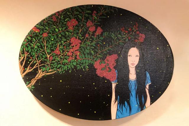 右:美国艺术家赫尔南·巴斯(Hernan Bas)的作品 《紫气》,刘韡