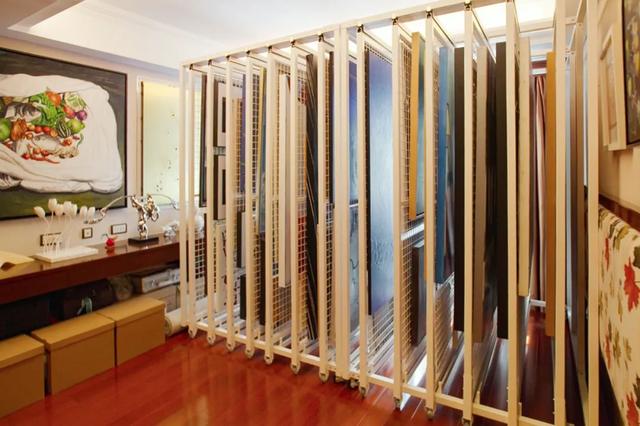 三年前,眼看着家中的画越来越多、快放不下了,关东元索性把主卧的床给拆了,找来师傅打造了带抽拉轨道的专业画柜。师傅们以前都是帮画廊、机构做,还是头一次接这样的活儿 —— 给一个家量身定做这样的专业“大装置”。
