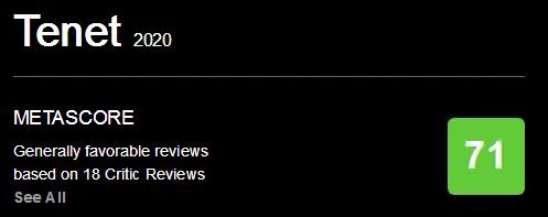 在评分最苛刻的MTC平台,《信条》拿到了71分,口碑评分并不高,但也还算可以。