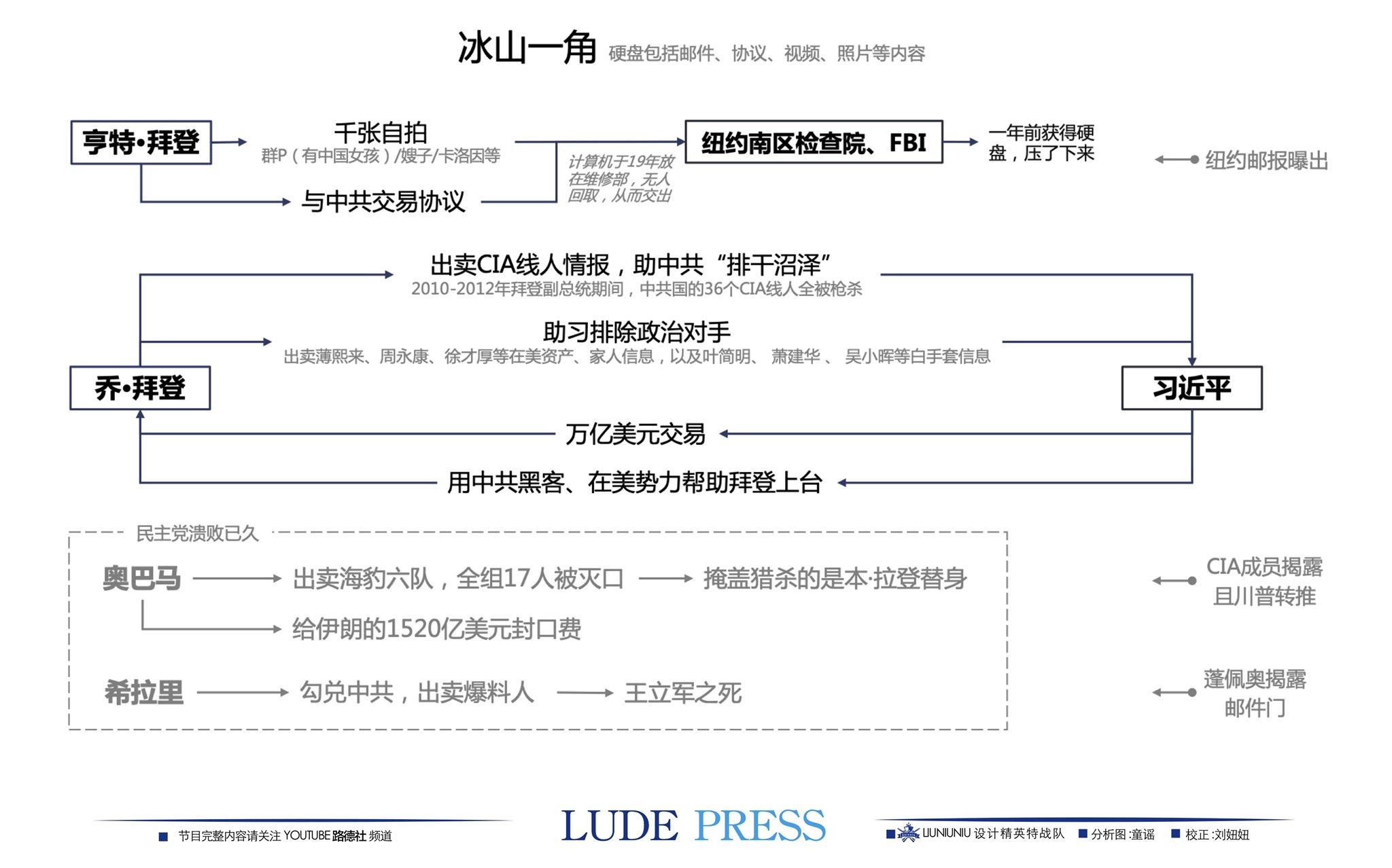 00:20:14路德:1.这只是冰山一角,我们节目说的都是冰山一角。别说他邮报出来。2.这是第一块硬盘,这一个硬盘拜登的硬盘出来了。2.这硬盘里头有多少和垬勾兑的。所有的无论民主党共和党,包括Bob Fu都在硬盘里边.我包括砸郭的这里头。包括昨天说的拜登出卖CIA的情报,出卖垬就是习近平的政治对手,各种情报给习近平,让他们把政治对手给灭了。还有包括叶简明,肖建华吴晓辉这都是拜登他们出卖的。我们最后都是用事实来验证。