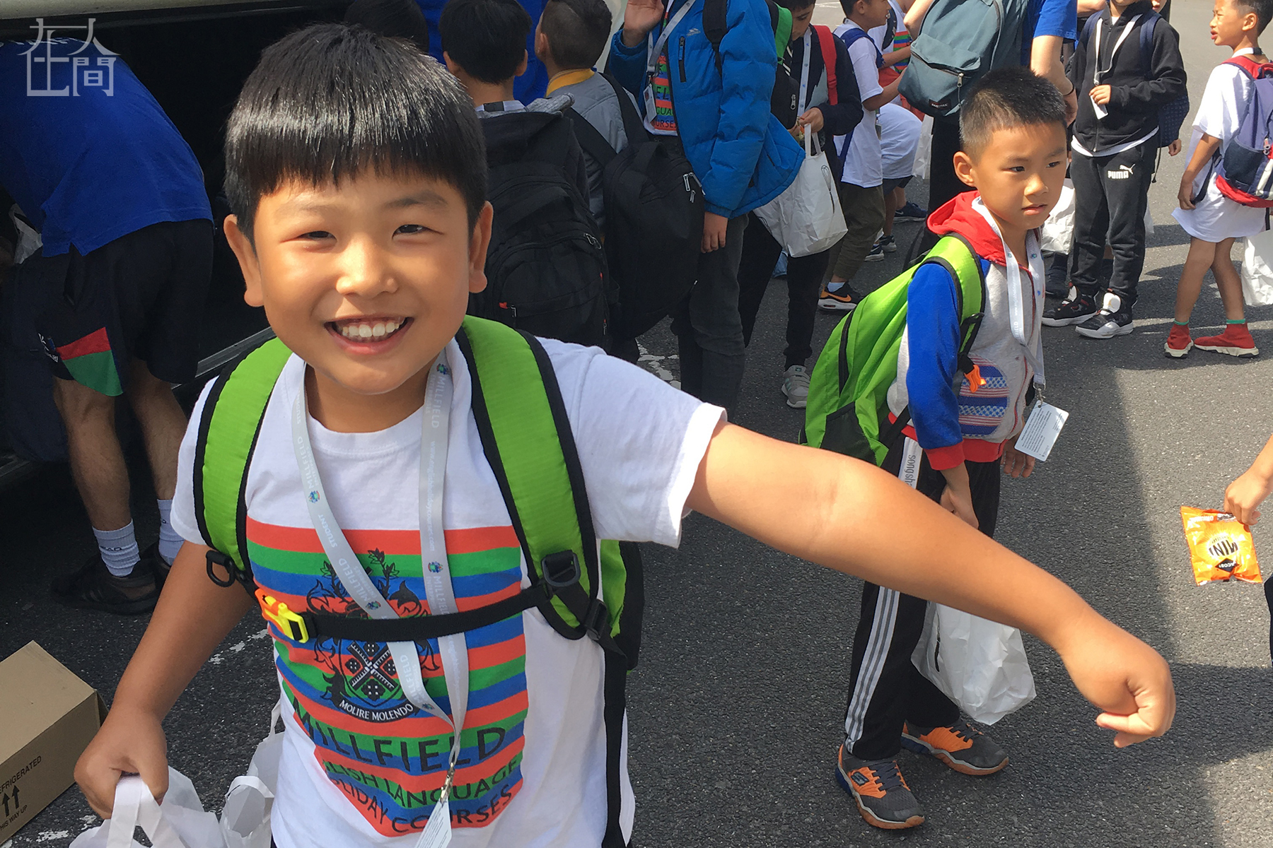 下午4点,英国,朗朗在米尔菲尔德夏校。 飞行十个小时后,朗朗期待已久的英国夏令营生活终于开始。来自世界各地十几个国家的一百多个孩子聚集在伦敦,最小的孩子还在幼儿园大班,最大的十一二岁。这一百多位参与的孩子中,中国学生占比最高。 这个为期21天的夏营费用五万多人民币,去年朗朗已经跟着妈妈参加了一次,今年家里本来不打算再报,但朗朗强烈要求,父母还是同意了。 图为2019年7月31日,英国夏令营,每天上午英语课间,孩子们在操场上喝果汁休息(受访者供图)。