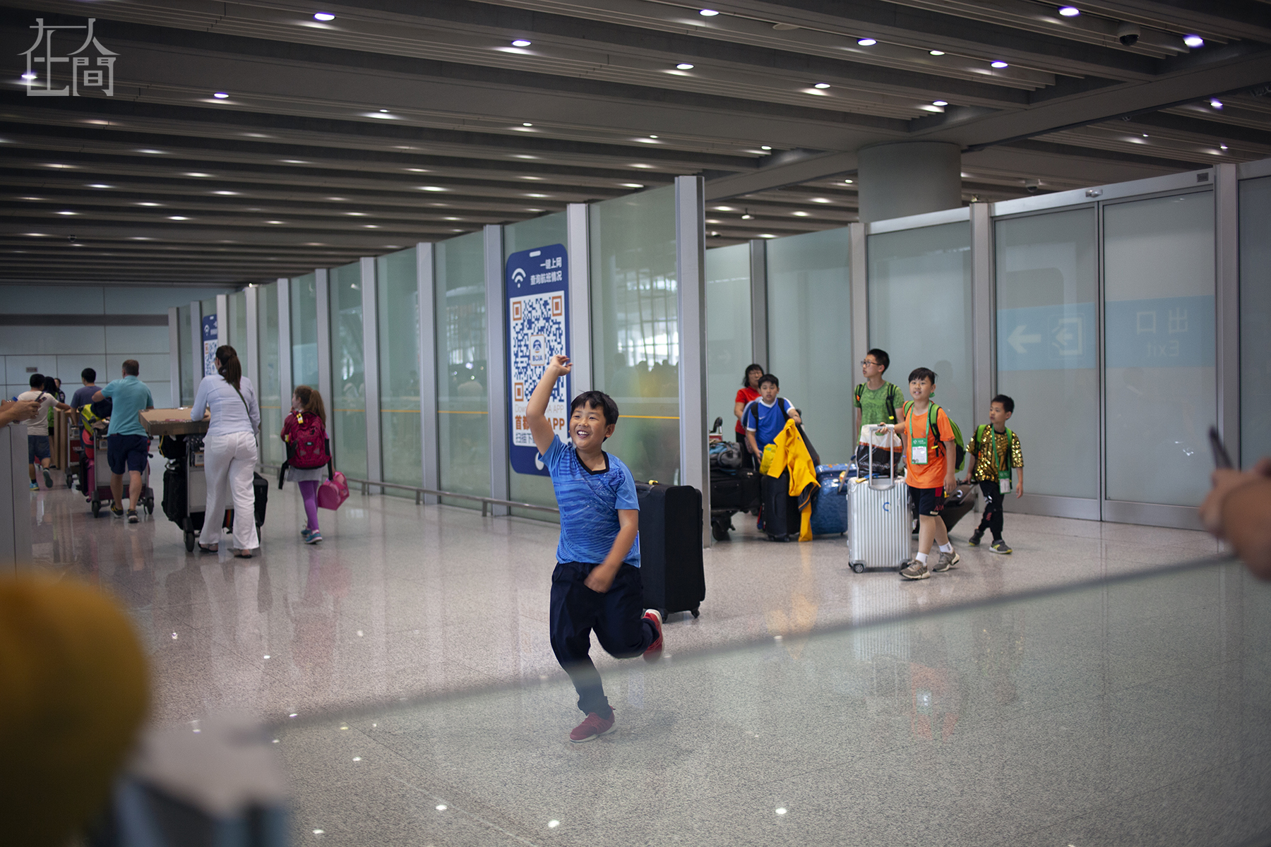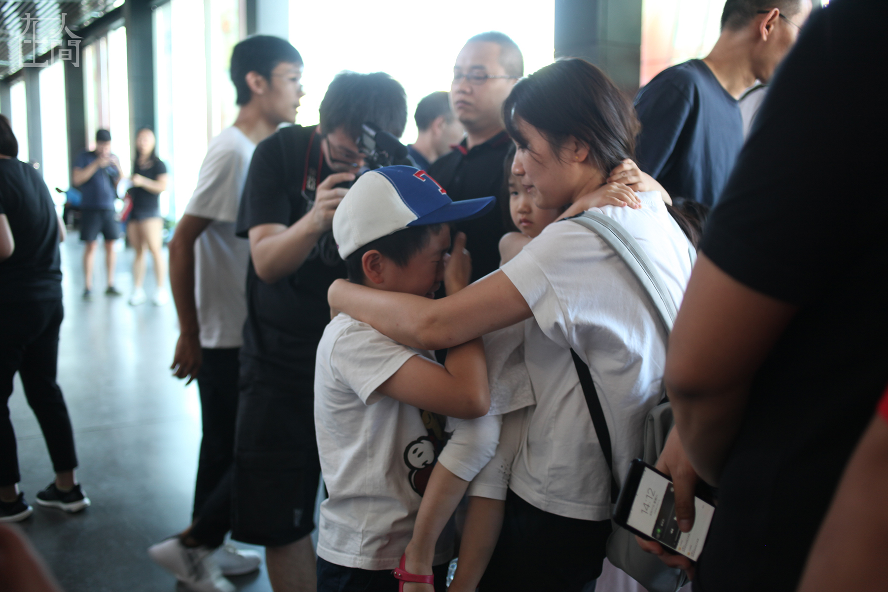 2019年8月19日,一出机场,朗朗就向妈妈就飞奔过来。