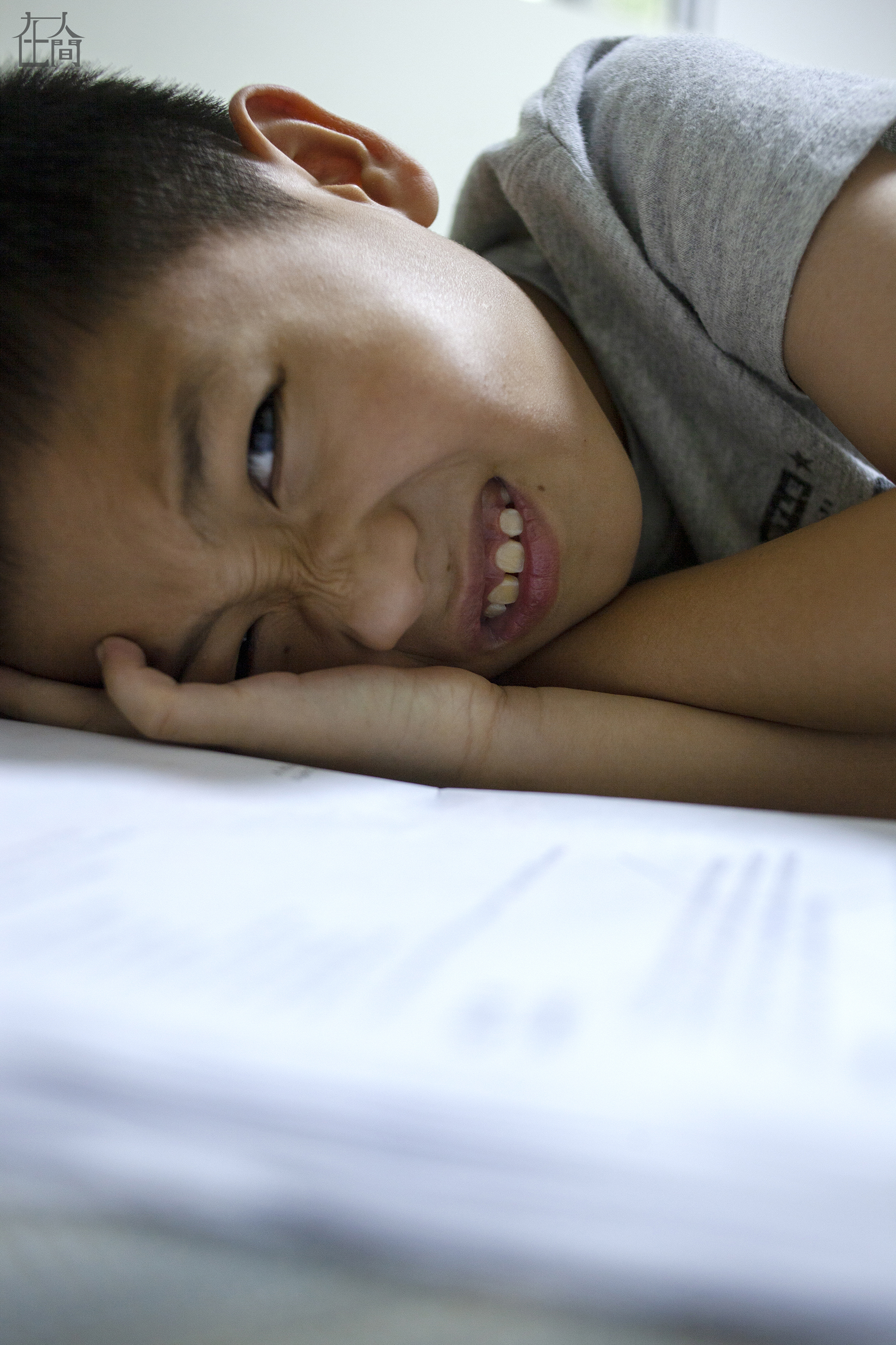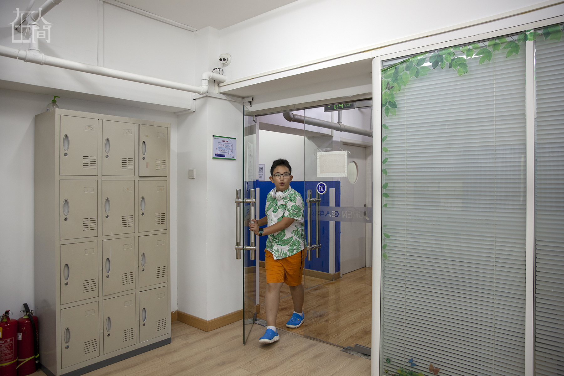 早上7点30分,北京,校校换好鞋子,等妈妈一起出发。 11岁的校校在海淀区一所公立学校念五年级,对他来说暑假期间每天7点起床,能比平日上学的时候多睡上半个小时,就是一件幸福的事了。补习班离家四公里,一般是爸爸开车或妈妈打车送他去上课,早饭就在补习班楼下的便利店解决,寿司饭团、炸鸡腿和一瓶牛奶,配上闷热的天气,满满当当的一天又开始了。校校上午有数学、英语、书法课,傍晚有足球课。