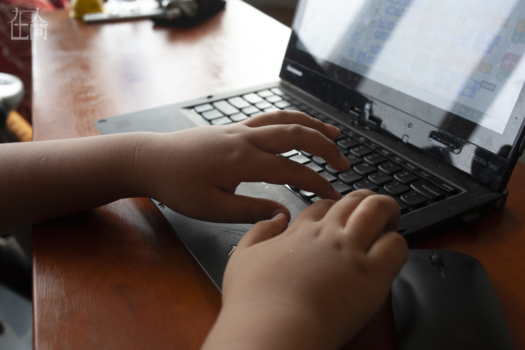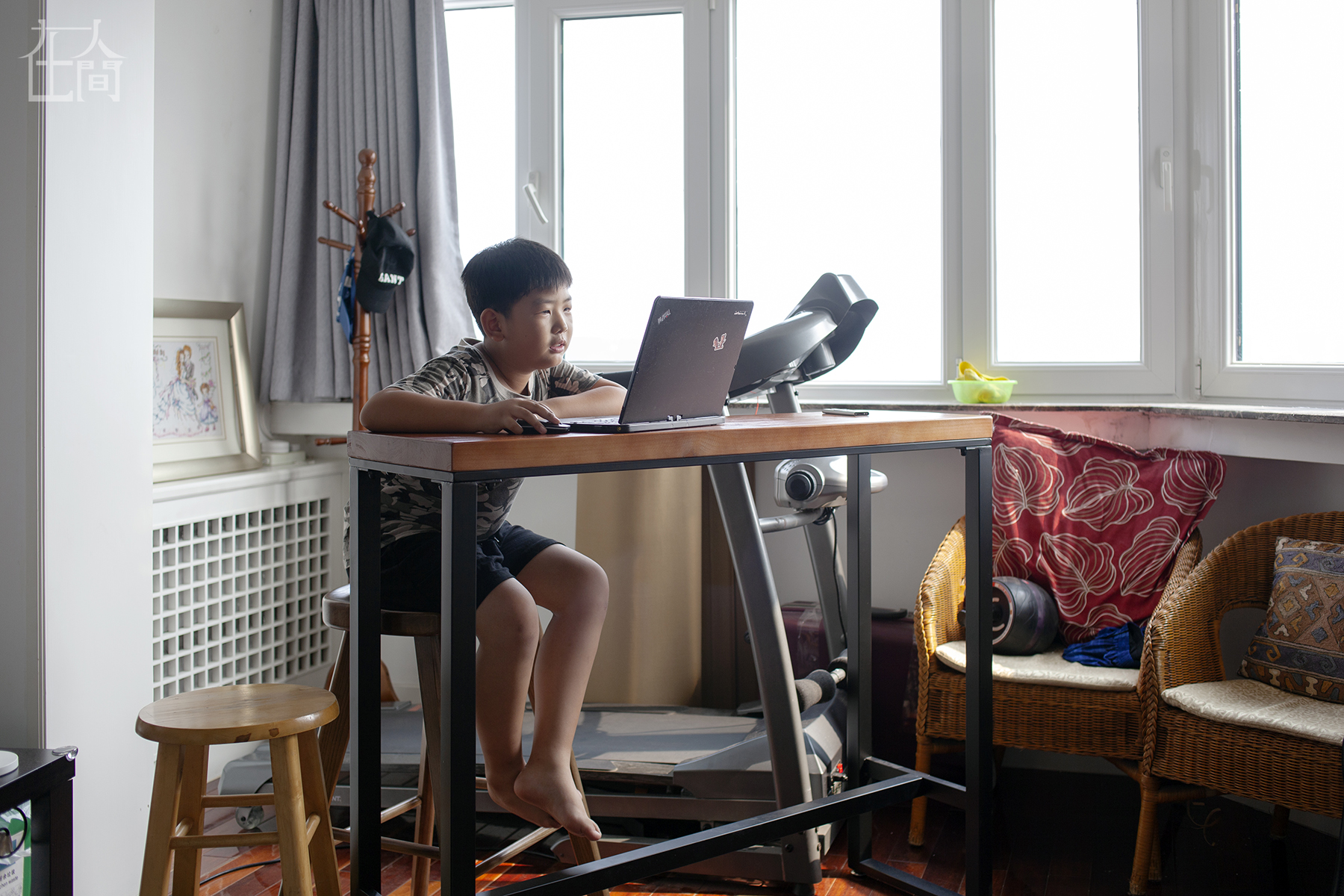 上午10点30分,北京,朗朗在练习德语发音。 2019年寒假,朗朗被报了十个兴趣班,并且全部完成。由于课程密度太大,最后让全家都有点吃不消。这个暑假,朗朗只报了三个兴趣班和一个为期三周的英国夏令营。 每天上午十点半到十一点半,朗朗开始一对一的德语网课。因为工作原因,家人计划把朗朗送到德国学习。德语老师不好找,课时费也更贵,但朗朗还是从这个暑假起开始学习德语。妈妈也在自学德语,希望对孩子是一个鼓励。 整个暑期,朗朗几乎每天都有网课,上课期间几个邻居家的小朋友在旁边玩耍、打闹嬉笑,但他仍端坐书桌,沉浸在自己的学习当中。2019年7月27日,朗朗正熟练地使用电脑上网课。