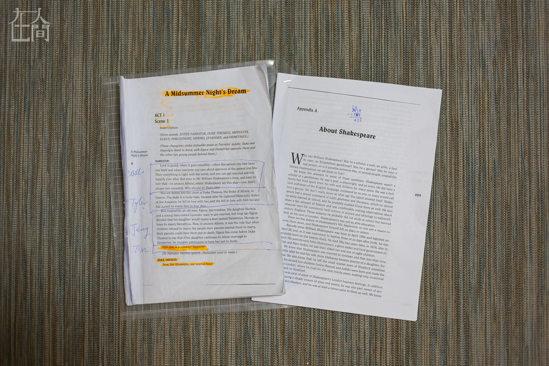 下午1点,北京,Tim一边扒拉午餐,一面不时的瞟两眼手中那一打A4纸。Tim手中打印的是莎士比亚的作品《仲夏夜之梦》英文原文,老师说没有用简化版,所以里面的台词对他们来说有很大挑战。英文戏剧班是在Tim的强烈要求之下报的,为期一周,这样他可以和小区内的两个伙伴一起玩耍。