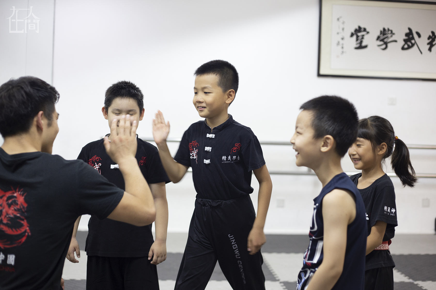 下午2点北京,Lucas换上了习武专用的黑色衣服。Lucas的武术课安排在足球课之后,精武会馆就在小区楼下的底商内,上课很方便,家里阿姨带着他就能来。
