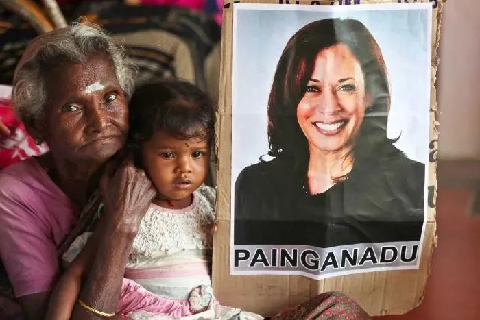 图:在贺锦丽母亲的出生地——印度南部的一个小村庄——人们也在欢庆她的选举胜利。