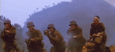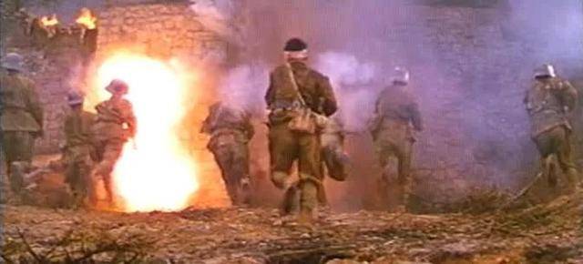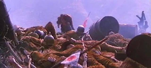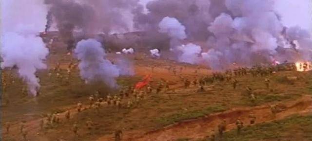 在机关枪的“突突”声中,一个个战士倒下,又有一个个战士踏着他们的尸体视死如归,奋力前行。