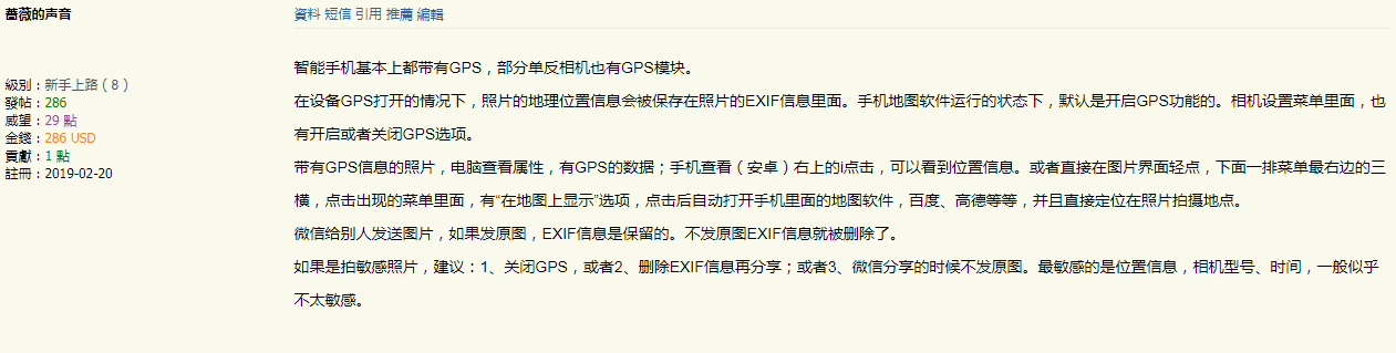 也就是说有EXIF信息的可以看出你的拍照设备型号、地点、参数等等各种信息。