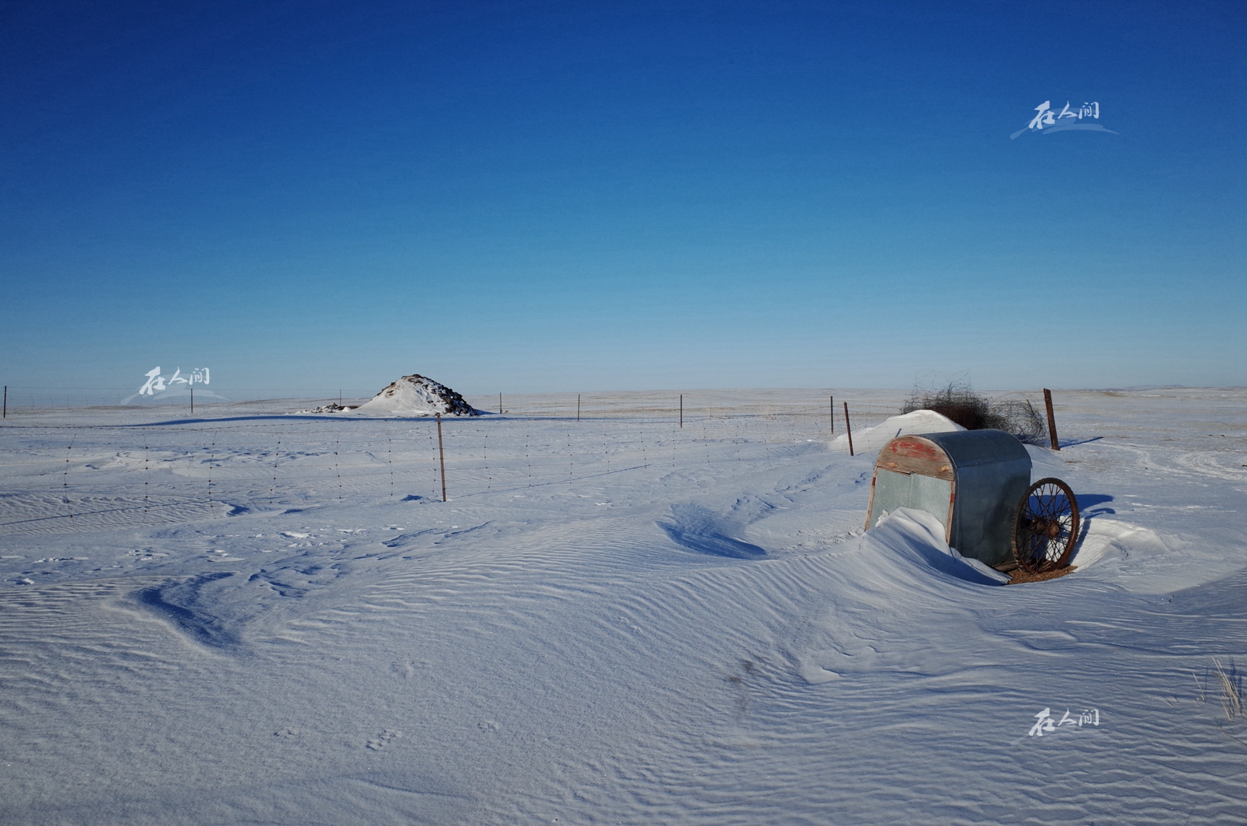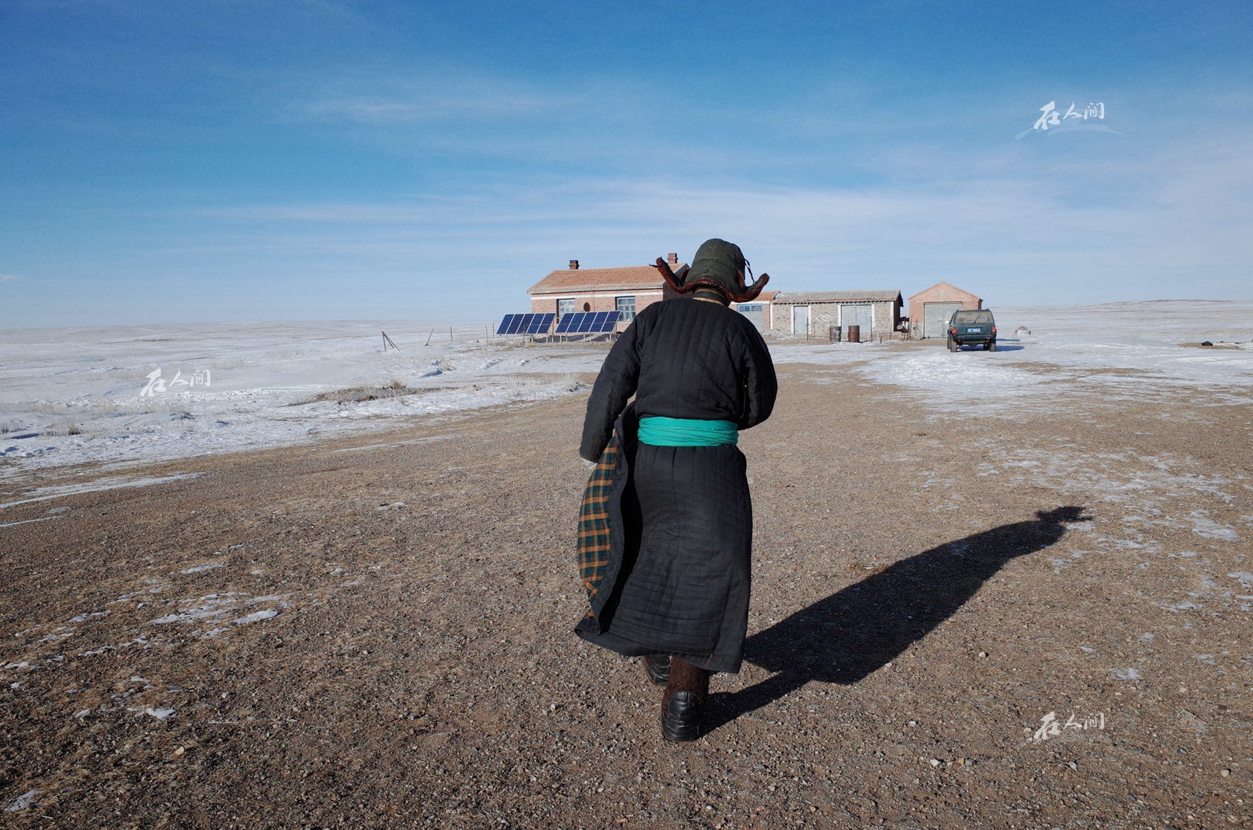 草原上的冬季漫长而又寒冷。冬天从11月末一直会延续到第二年的3月。牧民以及他们饲养的牲畜在零下40多度的气温下依旧顽强地生活着。