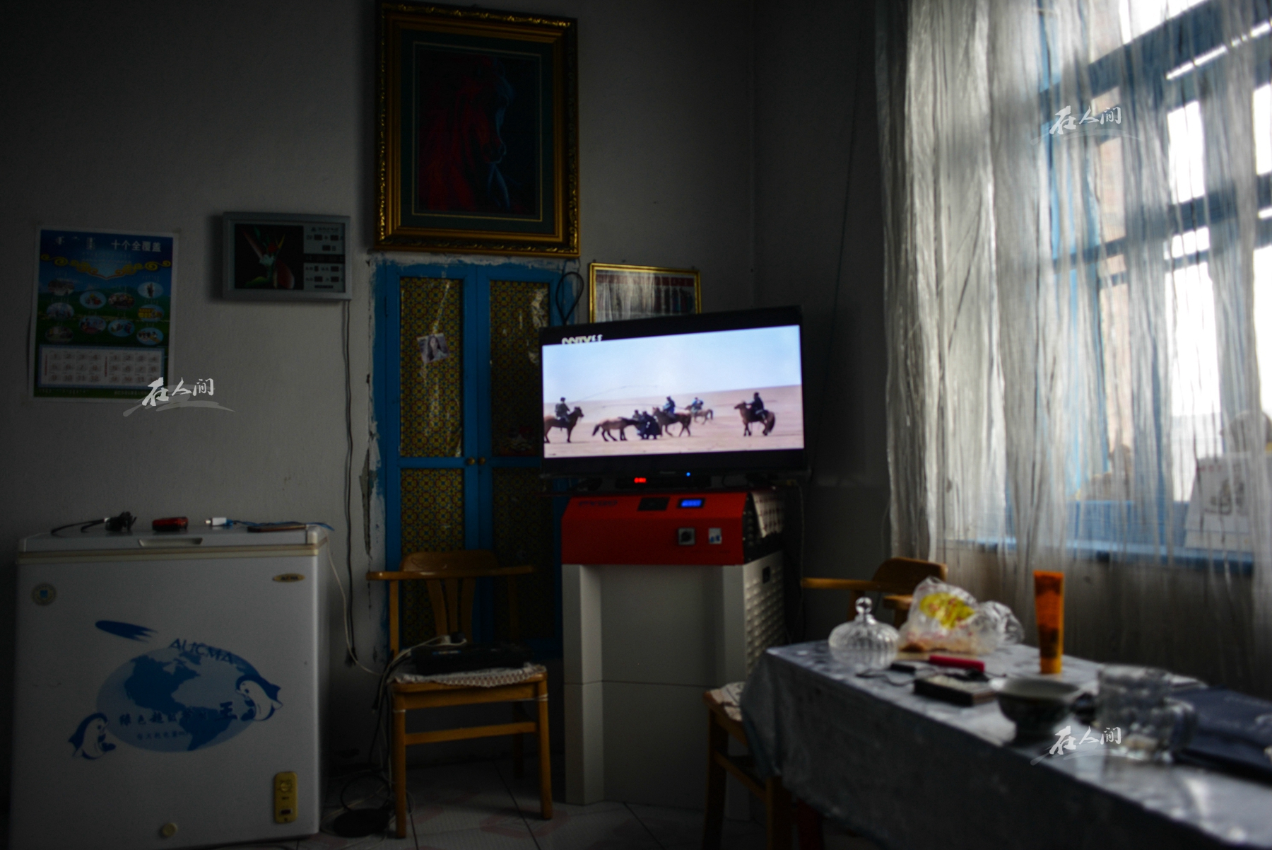 岳父现在很少骑马了,上回用它还是在2015年的冬天。无论是生活在草原上还是生活在城市里的蒙古人,都喜欢把马鞍子放到家中。马鞍子代表着曾经的游牧记忆。蒙古马可以带蒙古人走很远很远,如果没有马鞍子的支撑,那么,这一切都会大打折扣。蒙古马鞍是蒙古马和蒙古人的伙伴,是蒙古男人身份与地位的象征。图为存放在走廊里的蒙古马鞍。