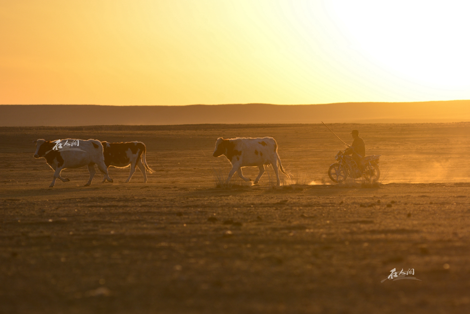 夕阳西下,岳父骑着摩托车将牛群赶回到牛棚内,结束一天的工作。几十年里,岳父从骑马放牧再到骑摩托车,最近已经是开车放牧了。 草原上除了羊以外,牛是最重要的乳制品来源,牛能够提供非常好的牛奶,岳母会挤牛奶,制作奶干、酸奶。在草原上蔬菜极少的情况下,这些奶制品是牧区获取维生素最重要的来源之一。