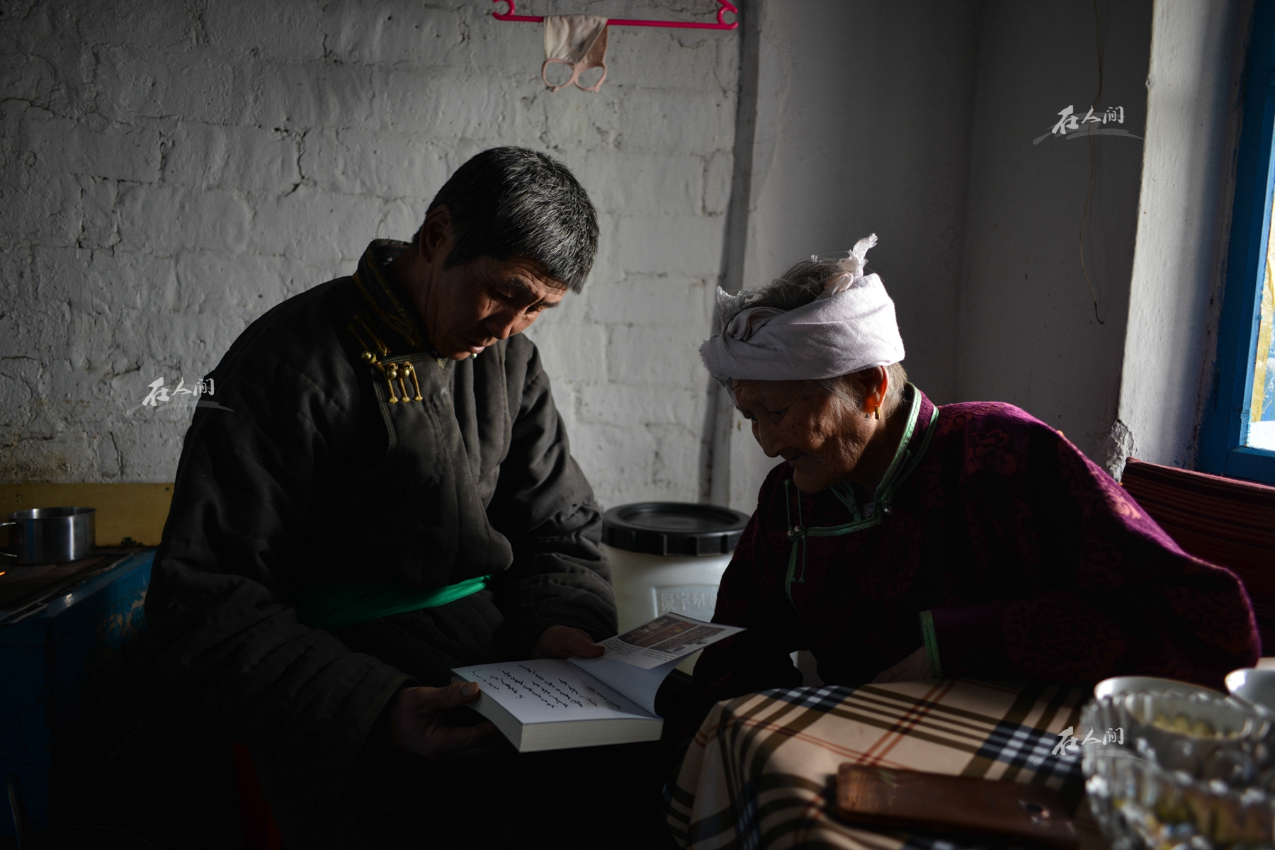 岳父已经穿上厚厚的棉袍,抵御严寒。岳父与岳父的岳母在朗诵书上的内容。岳父对待长辈极为尊敬,随时随地关心老人们。草原上最重要的就是礼仪,一定要有礼节,晚辈见到长辈一定要问好,一定要按照规矩做事情,这是草原上文化最重要的传承。 我与我的爱人私下商量过父母今后的养老问题,我们觉得他们目前的状态还是会更喜欢在草原上生活。不同的季节有不同的工作,身体条件允许的情况下,他们会一直在草原上忙碌。岳父的草原离我们生活的镇子很近,车程在25公里左右,我们一有时间就会回到岳父岳母身边。需要人手的时候,兄弟姐妹都回去帮忙。